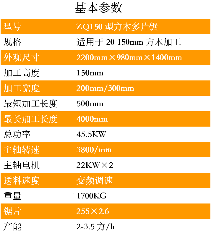 1.ZQ150型方木多片鋸采用獨立5條滾軸傳動設計,可以保證同一個平面線上,送料平穩。