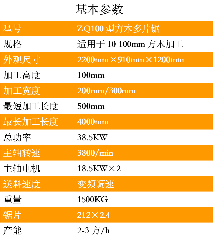 1.ZQ100型方木多片鋸采用獨立5條滾軸傳動設計,可以保證同一個平面線上,送料平穩(wěn)。