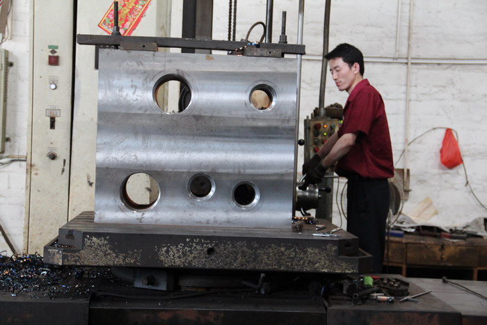 機械的整個主軸箱采用12厚的鋼板焊接成型