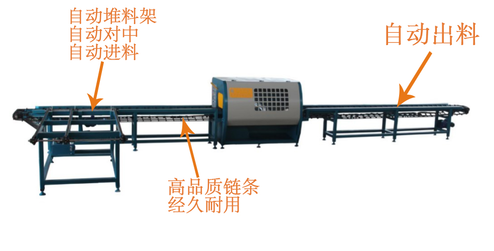 料:采用四排尖齒鏈條輸送,機上配有變頻智能調速器,可以對大小木料的進料速度實行自由調速。原木可以實現自動分中,機上還配有限位開關,防止超去規格木料進入,防止卡木避免對機器造成損壞。