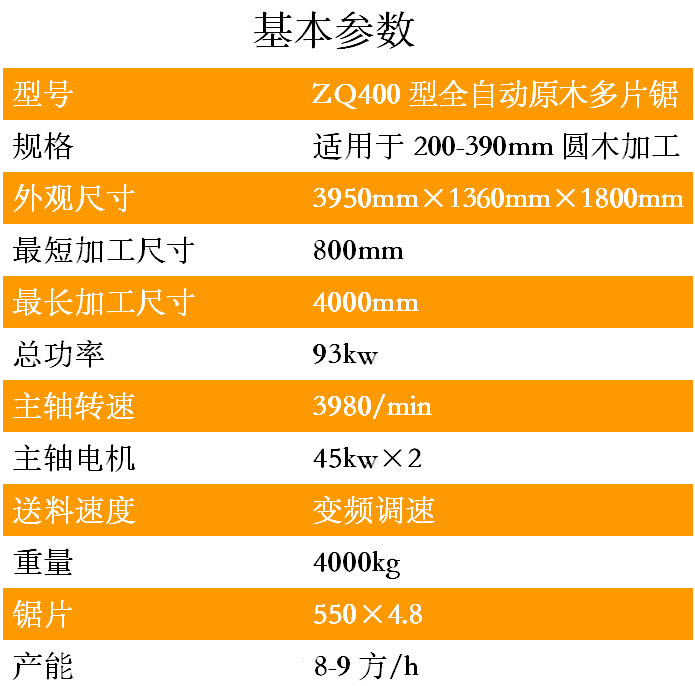 ZQ400型原木多鋸片是一種用于原木的開破以及分片的高性能專用機械,