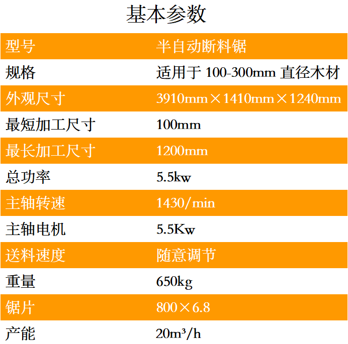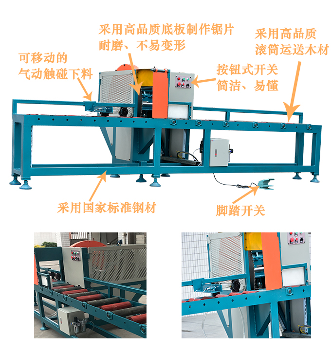 半自動截斷鋸是一種用于截斷圓木的專用機械,可取代傳統(tǒng)的斷木設備。本機是左右鋸設計,只需一名普通工人便可輕松操控,穩(wěn)定性高,加工表面平整光潔,截斷范圍可在100mm-30mm直徑木材。進料速度可根據(jù)實際所需隨意調節(jié),效率高,是傳統(tǒng)截斷機的2-5倍。鋸片配進口合金鋸片,使用壽命長.適用于原生木材,板材板方的切斷加工.本設備是采用腳踏開關的半自動截斷鋸,具有操作簡單,安全,效率快,切斷長度在100mm-1200mm范圍隨意設定,省時省工,大大減輕操作者勞動強度等優(yōu)點.
