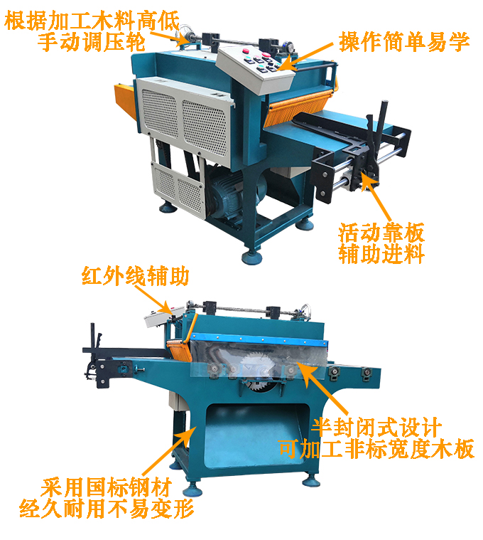 單片修邊鋸用于對木板進行修邊。規格多、送料速度快、修切精度高。安全、高效、穩定!是板料修邊的理想設備!